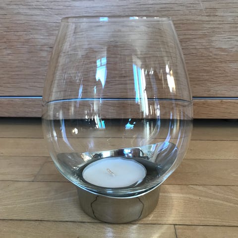 2 stk. Grace fyrfads lysestager fra Georg Jensen i håndlavet glas og rustfrit stål.
