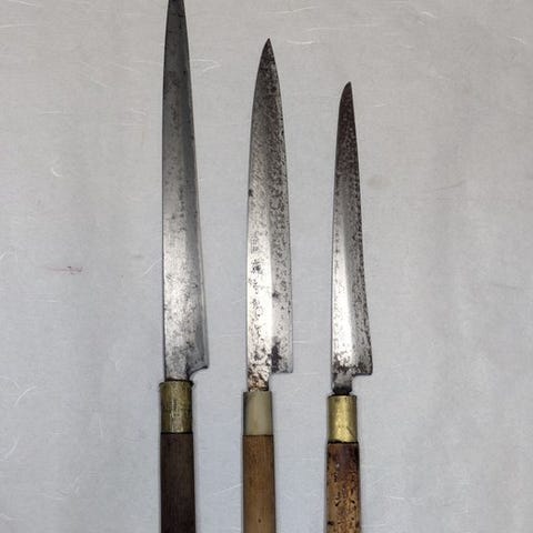 Vintage kokkeknive - en japansk nikiri købt i antik butik i Tokyo og en nordisk kokkekniv.