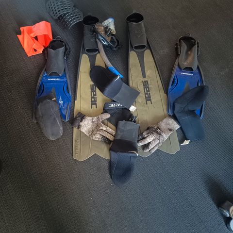 Diverse udstyr til dykning/snorkling/havsvømning.