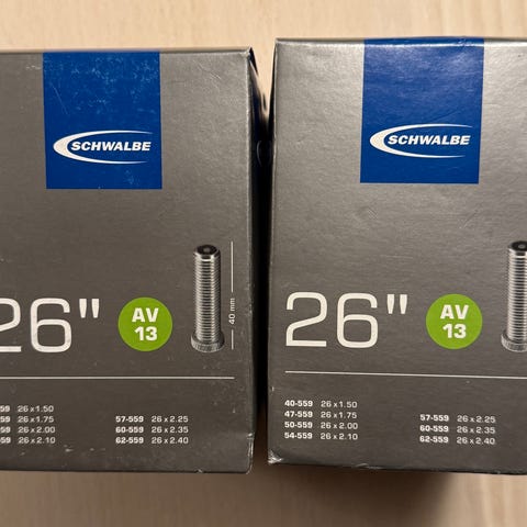 2 stk Schwalbe Air Plus 28" cykelslange AV17AP. Nypris 75kr pr stk