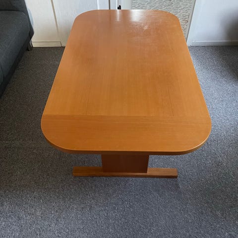 Bordet er 120 cm langt og 53 bred + 2 klapper af 23 cm på det bredeste sted, højden er 59 cm