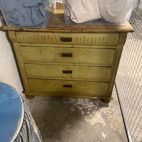 Sælger denne fine, smalle kommode i en flot off-white/creme farve med et let patineret look. Den passer perfekt til de mindre rum eller til opbevaring i f.eks. entréen.