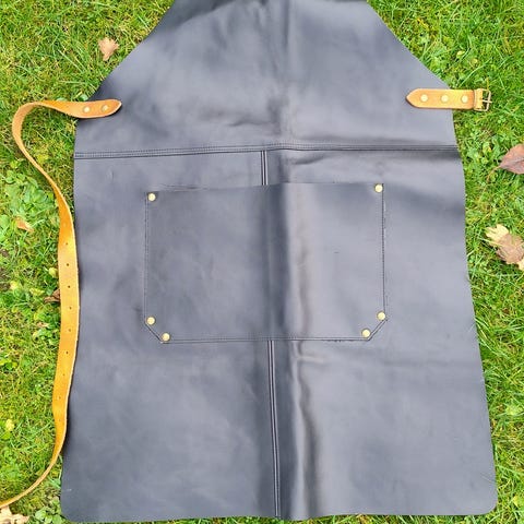 Forklædet er i kraftigt ægte læder og har justerbar nakkerem med trykknapper samt stor praktisk lomme foran. Ideelt til grill, madlavning, værksted eller hobby – og en oplagt gaveidé 🎁🔥