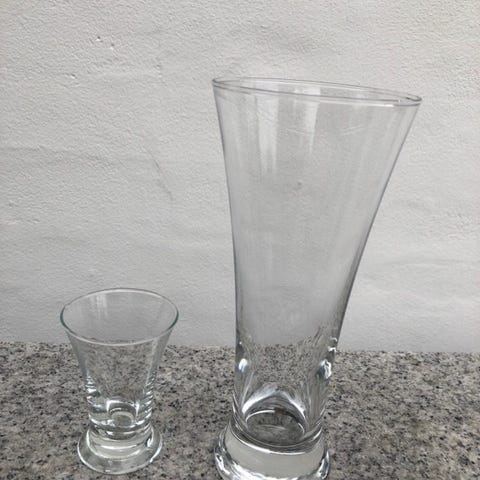 IKEA ølglas i klart glas. Ø8 x 23cm Sættet består af flere høje glas med rund fod og let buet form, velegnet til servering af øl eller andre kolde drikke ved borddækning i køkken eller spisestue.