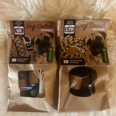 Sælger 2 nye DIY-sæt til at lave hundehalsbånd og hundesnor i paracord.