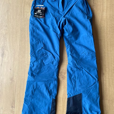 Salomon AdvanceSkin skibukser i størrelse L. Bukserne er sorte og fremstillet i et teknisk materiale med AdvanceSkin-teknologi. De har bæltestropper i taljen, lynlåslukning foran og lynlåslommer i siderne. Forstærkninger forneden på benene giver ekstra slidstyrke. Velegnet som skibukser eller yderbukser til vinter- og udendørsaktiviteter.