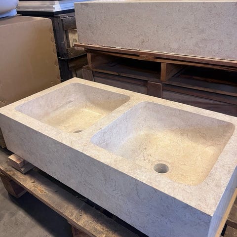 Dobbeltvask i marmor inklusive amature + tilhørende spejl