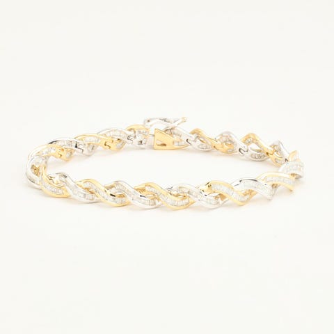 Guld Armbånd med diamant i 18 karatVægt: 5.3 gram\nLængde: 17.5 cm\nBredde: 1.6 mm\nDer er i alt 100 diamanter (0.015 ct.)