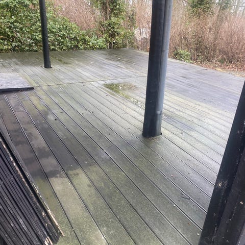 Ønsker du en overdækket terrasse? Du er velkommen til at få denne hvis du selv tager den ned. Inkl. stolper osv.