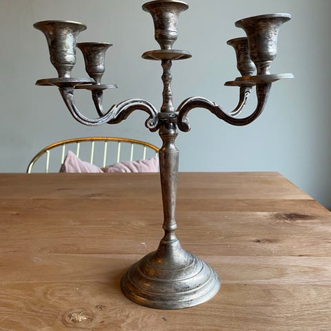 Trearmet sølvplet lysestage med “tung” fod i art deco stil 🌿
