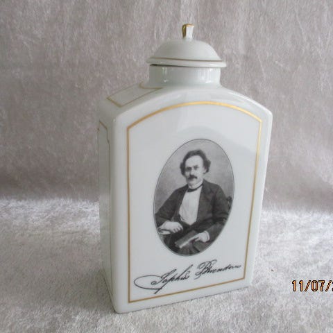 Krukken er 18,5 cm. høj incl. låg , bredden er 10,5 cm. og "dybden" er 5,5 cm.