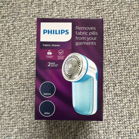 OBH Nordica Fuzz Away fnugfjerner i sort plast. Elektrisk fnugfjerner til tøj og tekstiler, der fjerner fnug og noprer fra blandt andet trøjer, jakker og andre stofmaterialer. Kompakt håndholdt model med metalhoved og opsamlingsbeholder til afklippede fnug. Egnet til brug på forskellige typer stof, hvor overfladen ønskes jævnet og pænere.