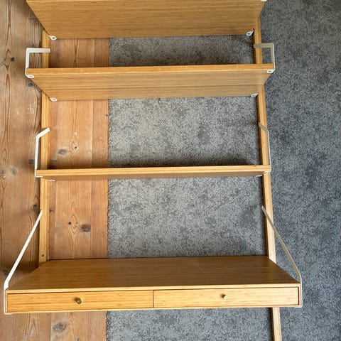 Sælger dette smukke og tidløse SVALNÄS reolsystem fra IKEA i bambus med hvide skabe. Systemet har et let og nordisk udtryk og passer perfekt ind i en moderne, minimalistisk indretning.
