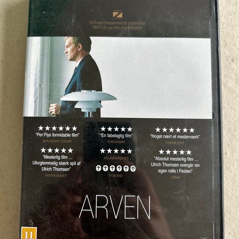 Arven dvd film. Dansksproget spillefilm udgivet på dvd. På forsiden ses filmens titel og anmeldelser. Velegnet til afspilning på dvd-afspiller, der understøtter standard dvd-format.