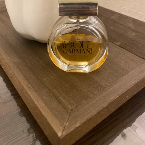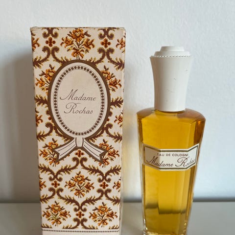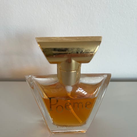 Vintage Parfume flakon i klart glas med guldfarvet låg. klassisk og facetteret design fra 1960erne.