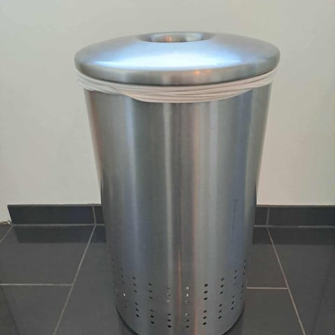 Vasketøjs spand, Sælger denne her flotte vasketøjs spand med låg i hvid stål.