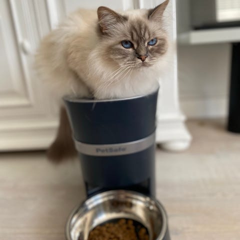 Foderautomaten åbner og lukker automatisk ved registrering af kæledyrets mikrochip eller RFID-halsbånd (2 medfølger). Enheden har en integreret foderskål og låg, som hjælper med at holde foderet friskt og beskytte mod andre dyr i husstanden. Velegnet til portionskontrol og adskilt fodring af flere kæledyr i samme hjem. Passer til tør- og eventuelt vådfoder.