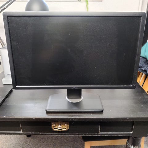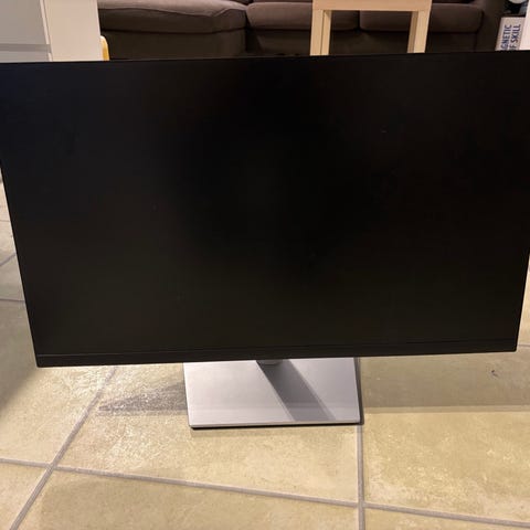 Dell P2419H skærm på 24" i sort. Flere tilslutningsmuligheder, herunder DisplayPort, HDMI, VGA samt USB-porte. Der er indbygget USB-hub. Skærmen er monteret på fod, som understøtter justering af højde og hældning.