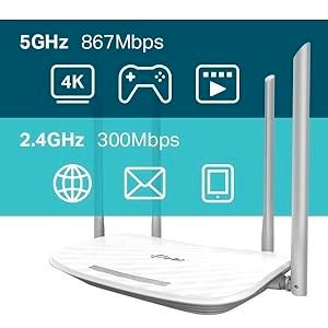 TP-Link Archer C1200 router i sort med tre eksterne antenner. Egnet til oprettelse og deling af internetforbindelse i hjemmet eller på kontoret via kablet eller trådløst netværk. Understøtter flere LAN-porte på bagsiden til tilslutning af computere og andre enheder via netværkskabel.