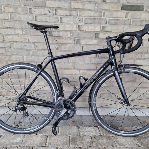 Fin Trek racer cykel, der har stået stille et stykke tid. Den skal derfor have ny kæde, sadel samt justeret forskifter.