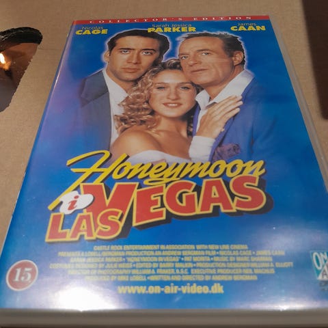 Honeymoon i Las Vegas DVD-film. Komedie på DVD med aldersgrænse 15 år. Dansk udgivelse fra On-Air Video med flersprogede undertekster angivet på omslaget. Leveres i originalt DVD-cover med trykt skive.