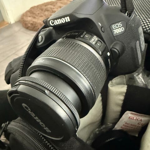 Fint Canon EOS 750d med tilhørende lader, taske og en mikrofon fra RØDE. Meget lidt brugt!