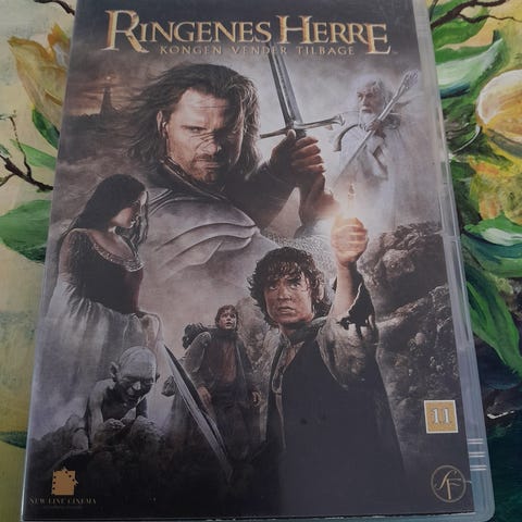 Ringenes Herre Kongen vender tilbage dvd film. Udgave af den tredje film i Ringenes Herre-serien. Fysisk dvd-medie med filmens originale cover. Egnet til afspilning på dvd-afspillere, der understøtter den angivne aldersmærkning 11 år.