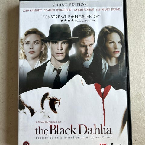 The Black Dahlia dvd film. Dvd-udgave af spillefilmen "The Black Dahlia". Forsiden viser filmens titel og hovedroller. Egnet til afspilning på dvd-afspillere, der understøtter standard dvd-format.