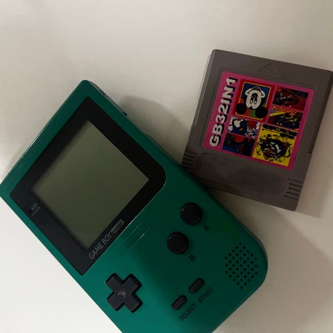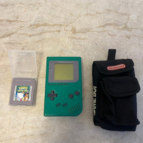 Nintendo Game Boy håndholdt konsol i grå. Klassisk model med indbygget monokrom skærm, styrkors og A/B-knapper samt start- og select-knapper på fronten. Konsollen har stik til hovedtelefoner og link-kabel i siden samt batterirum på bagsiden. Velegnet til originale Game Boy-spilpatroner. På billederne ses også en spilpatron, som eventuelt følger med efter aftale med sælger.