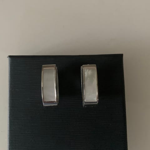Nye pæne øreringe i “sølv” med stor similisten i midten.