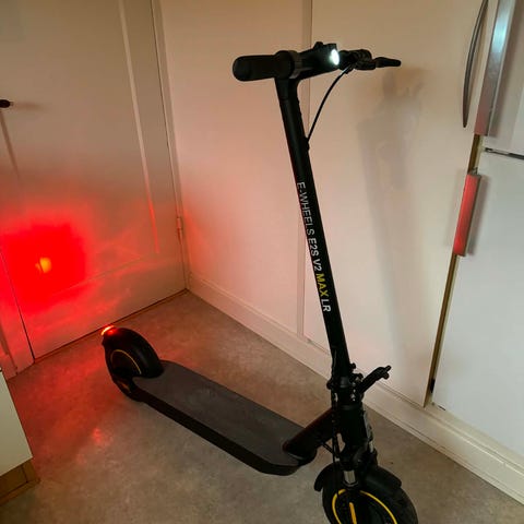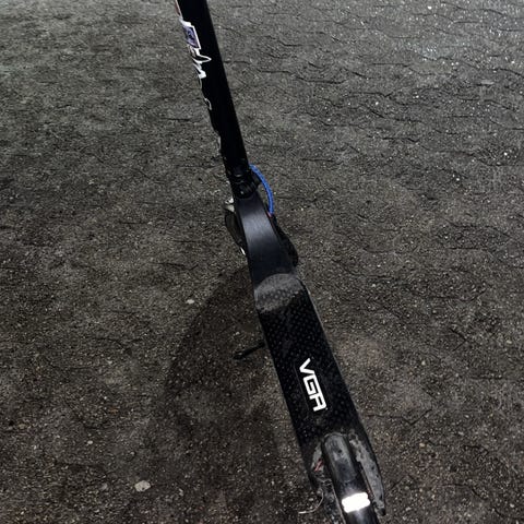 Viger el-løbehjul i sort. Modellen har elektrisk motor, lys foran og display ved styret. Løbehjulet er udstyret med små hjul og et lige styr med håndtag. Velegnet til kørsel på asfalt og faste underlag. Farven er overvejende sort med dekorationer på styret.