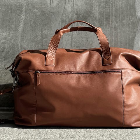 Unisex weekendtaske fra Markberg i LWG-certificeret læder. Tasken har et stort hovedrum med indvendig lynlåslomme og en udvendig lynlåslomme til opbevaring af mobiltelefon, nøgler eller lignende. Hanke er udført med ekstra læderpaneler.