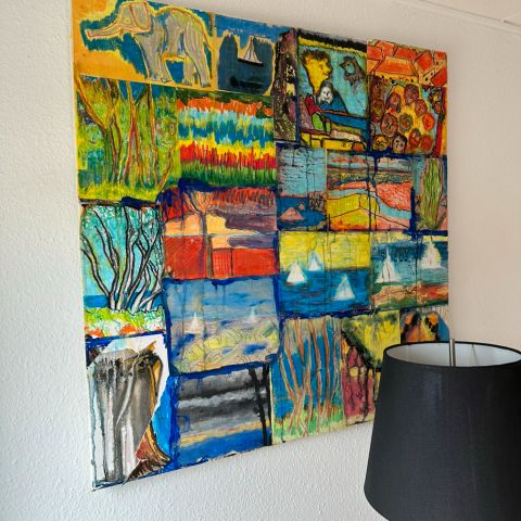 Vil du ha’ farver der liver dit hjem op? Så er denne fine collage med cool og kantet ramme nok lige noget for dig.