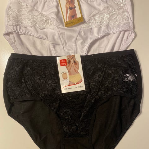2 par nye hvide trusser i str. 5XL, med blonder foran.
