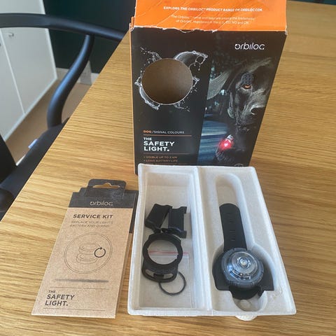 Orbiloc The Safety Light i rød. Brugt få gange.