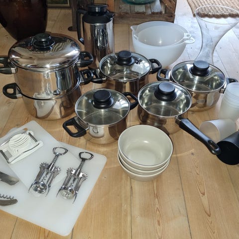 Andet, Petite køkkensæt, Sælger dette her fine petite køkkensæt bestående af 4 gryder med låg og 2 pander.