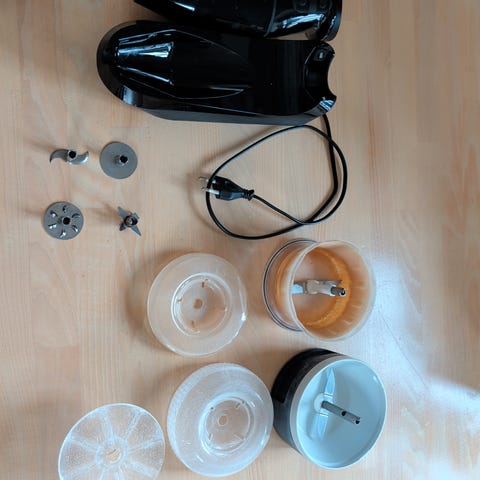 Stavblenderen har et langt blenderben i metal med beskyttelsesskærm omkring kniven. En enkelt beskyttelsesarm er knækket, det har dog ingen betydning for funktionaliteten.