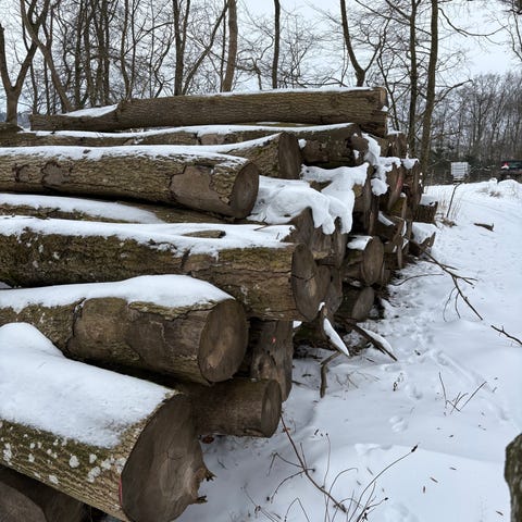 Blandet løv har stået i 2 år. Dækket. Tørt