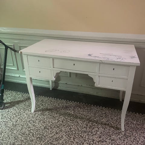 med stor skuffe, fejlfrit og smukt at se på. Plads til meget skrivegrej i skuffen.