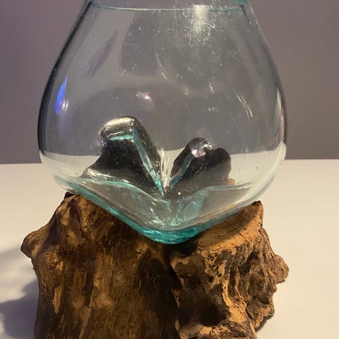 Svæve vase - Træ planteholder med glasvase