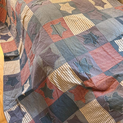 Gammelt sengetæppe til barneseng.