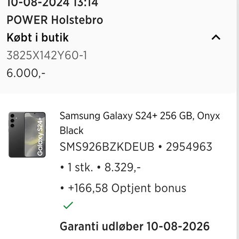 Samsung Galaxy S24 smartphone med 128 GB intern hukommelse. Enheden fremstår i sort med tre bagkameraer og frontskærm i fuld størrelse. Egnet til almindelig brug som opkald, beskeder, internet, apps og foto/video. Understøtter installation af apps fra Google Play og typiske Android-funktioner som flere hjemskærme og notifikationspanel. Kun 7 måneder gammelt, der er stadig garanti på 13 måneder. Tip top uden rids eller noget.