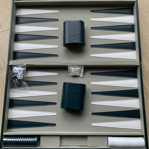 Travelers Choice backgammonspil i kuffert grøn rød sort