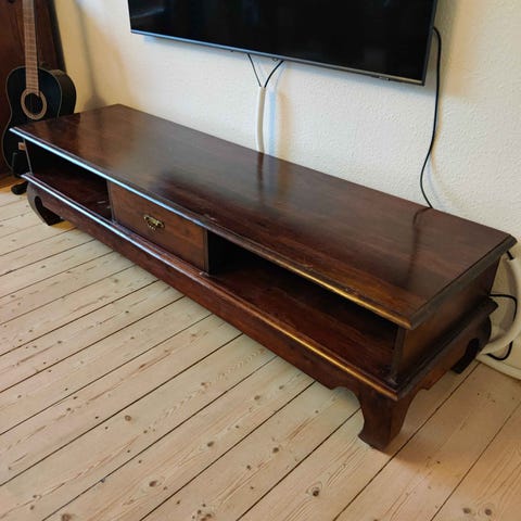 Flot retro teak sidebord/TV-bord med hylde og hjul