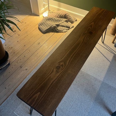 Få flere siddepladser med en spisebordsbænk Årsag til outlet: Bænken har en revne for enden af den ene side. Varen har ingen emballage og skal derfor afhentes på vores lager (se billeder) Bryd det klassiske spisebordssæt med et bord bænkesæt. Ikke nok med at en spisebordsbænk visuelt fylder mindre i rummet, så er den også mere fleksibel og skaber mulighed for flere pladser. En bænk er et ideelt alternativ, hvis du har en mindre spisestue, da du let har mulighed for at skubbe bænken ind under bordet. Bænken er anvendelig i hele huset og klæder lige såvel soveværelset og gangen som spisestuen. Suusan spisebordsbænk er en træ bænk i eg, der matcher vores flotte Susan plankebord i både materiale og udseende.