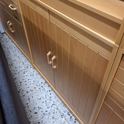 Skabet har glasdøre og hylder, fremstillet af lyst træ. Det har en enkel og moderne stil. Der er installeret lys i skabet. Fremstillet på Hammel møbelfabrik ,Afhentes i:,Røde Kors Ølby/Køge (259),Bemærk at mail, chat og beskeder ikke besvares, og varen skal købes på knappen "Gå til varen"