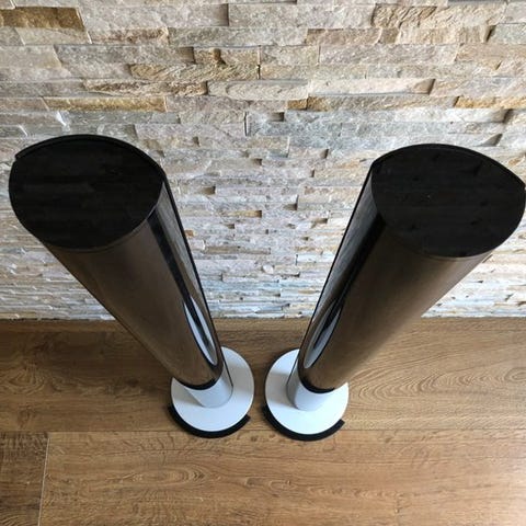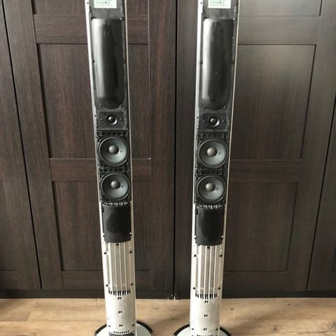 Med disse BeoLab 6000 MK2. Det drejer sig om versionen med basopdatering, anderledes skum i tuberne i modsætning til MK1, og forbedrede forstærkere. BeoLab 6000 MK2 er i fantastisk stand, både teknisk og kosmetisk, inklusive nyt materiale på fronten. De producerer en meget fin og tight lyd i forhold til deres størrelse. BeoLab 6000 kan tilsluttes via PowerLink til en Bang & Olufsen-enhed som en BeoSound, BeoCenter eller BeoVision.
