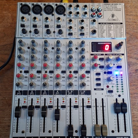 Behringer Xenyx X2442USB, en analog mixer med 24 indgange og 4/2 busser designet til optagelser og liveoptrædener.