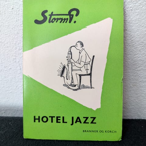 Hotel Jazz og andre Fortællinger., Robert Storm Petersen, genre: humor, Branner og Korch, 1963. 91 sider. Hæftet orig. omslag med illustration af Storm P. Pænt eksemplar Illustreret sort/hvid. Meget pænt eksemplar, Vurdering 500,kom med et bud