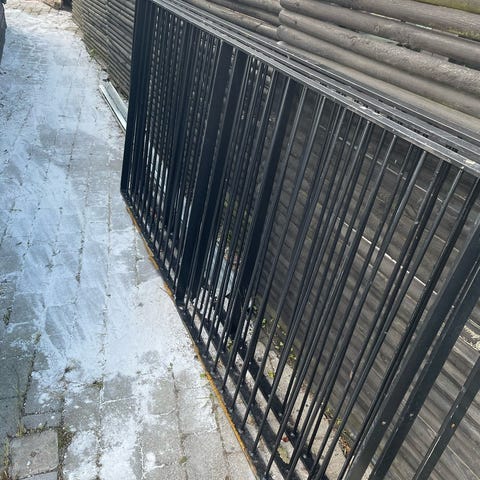 Et tungt og stort vindues- eller dørgitter i støbt metal.